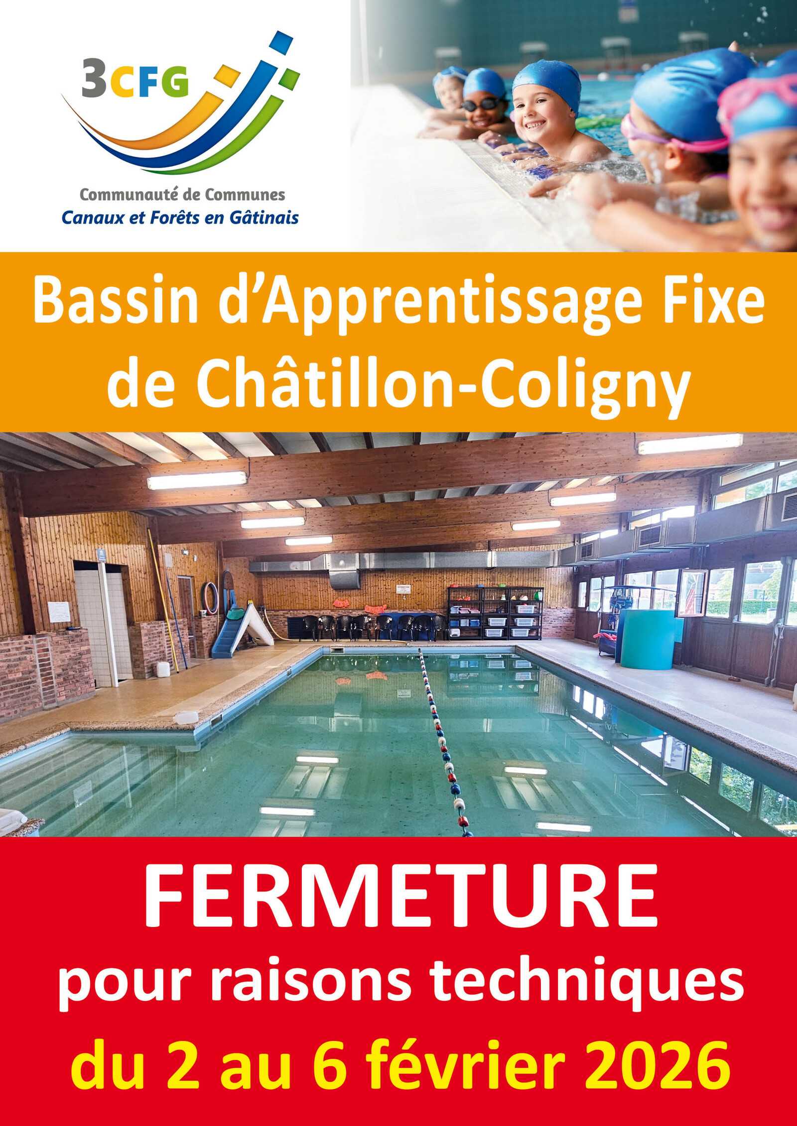 BASSIN D'APPRENTISSAGE FIXE - CHATILLON-COLIGNY - FERMETURE EXCEPTIONNELLE DU 2 AU 6 FEVRIER 2026