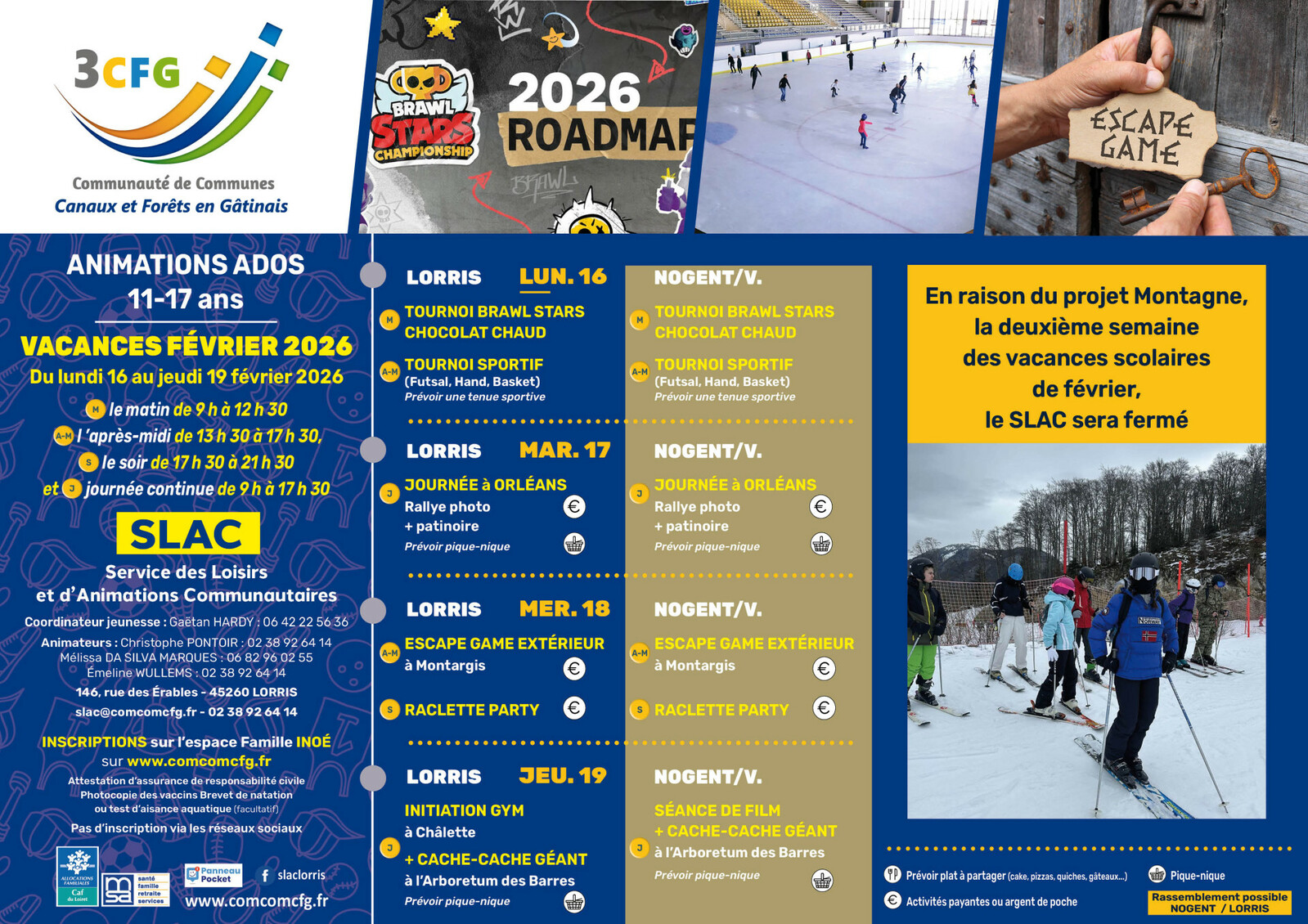 SLAC - ANIMATIONS ADOS LORRIS / NOGENT - Du Lundi 16 au jeudi 19 Février 2026