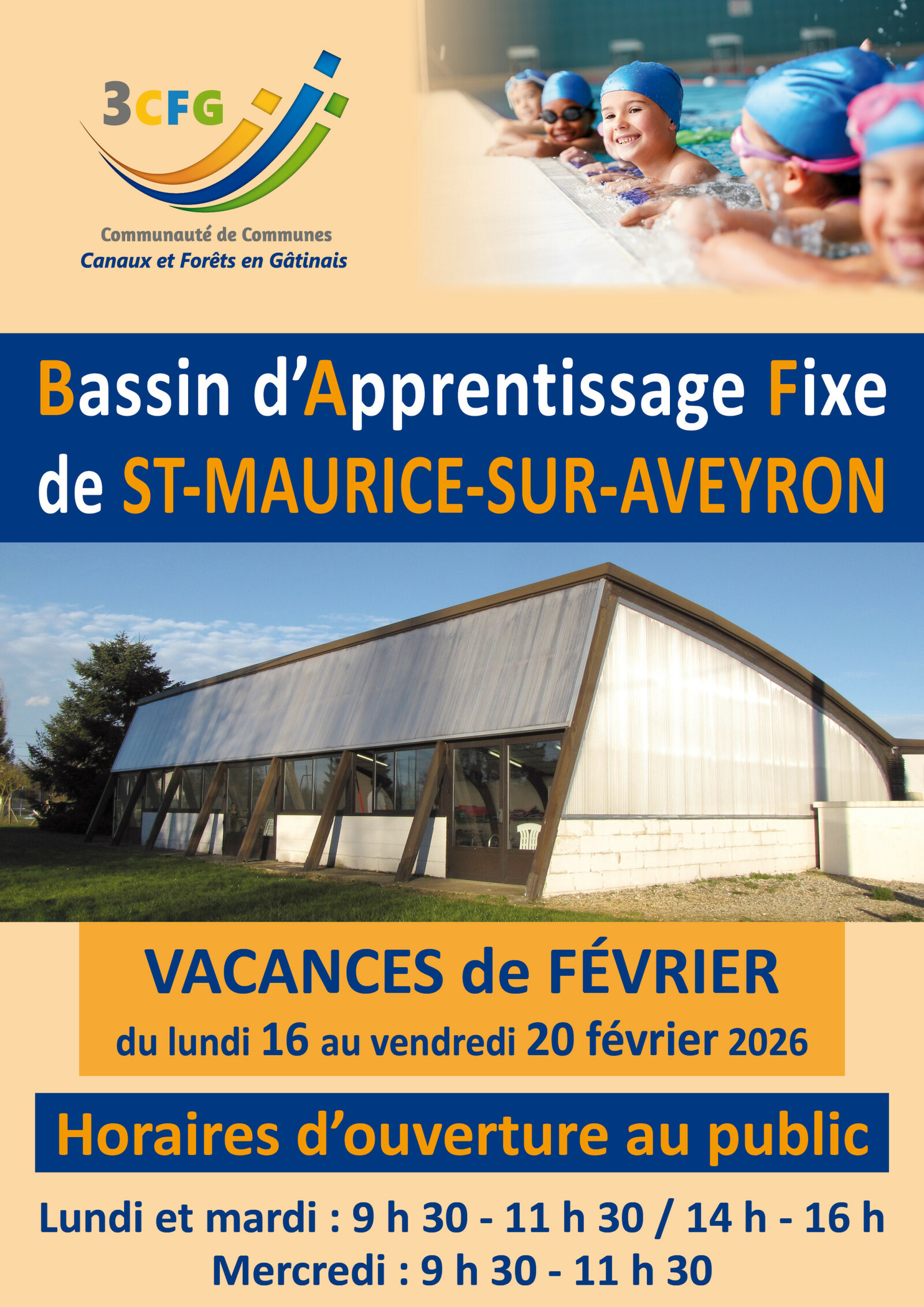 BASSIN D'APPRENTISSAGE FIXE - SAINT-MAURICE-SUR-AVEYRON - HORAIRES OUVERTURE VACANCES DE FÉVRIER