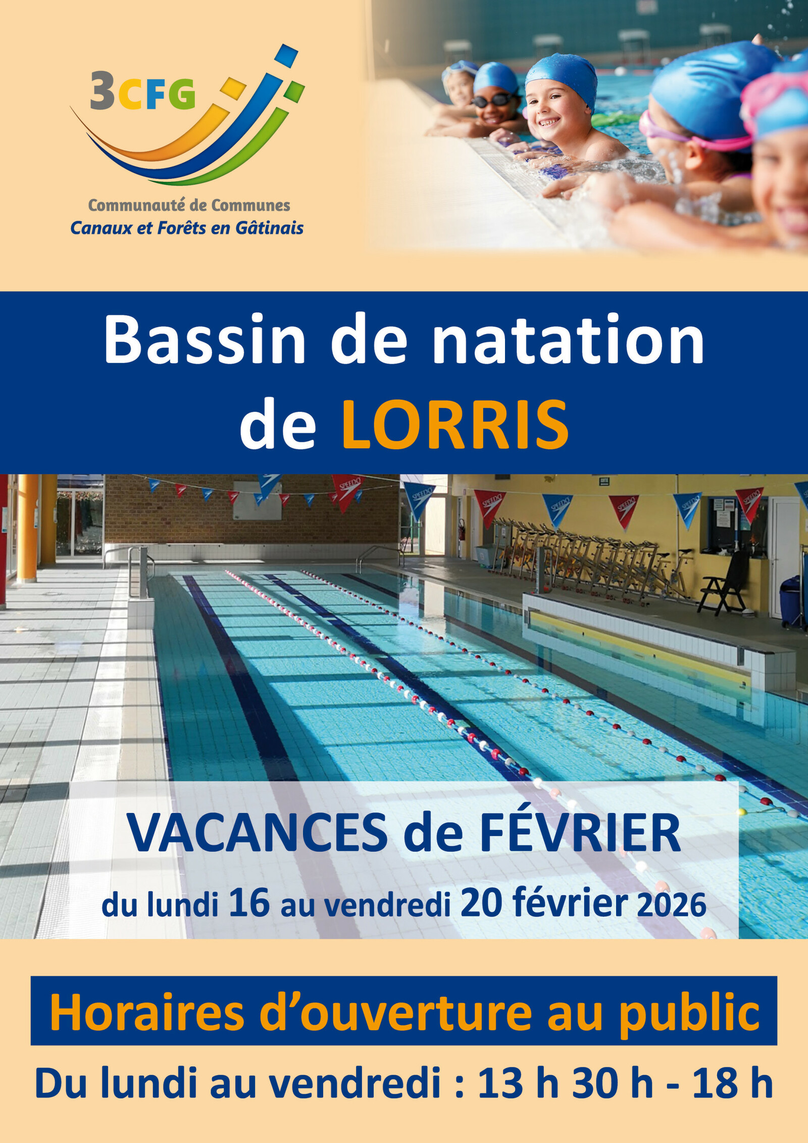 BASSIN DE NATATION - LORRIS - HORAIRES OUVERTURE VACANCES DE FÉVRIER