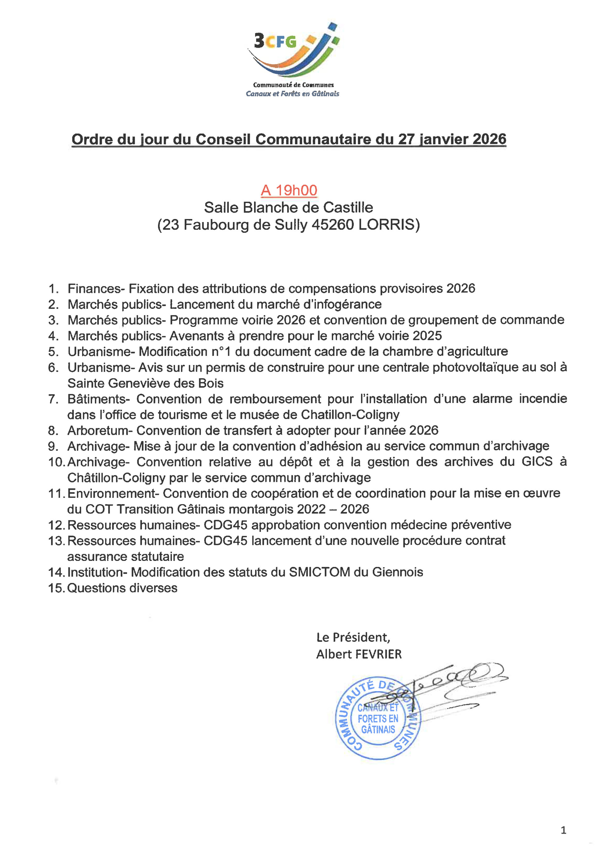 CONSEIL COMMUNAUTAIRE 27/01/2026