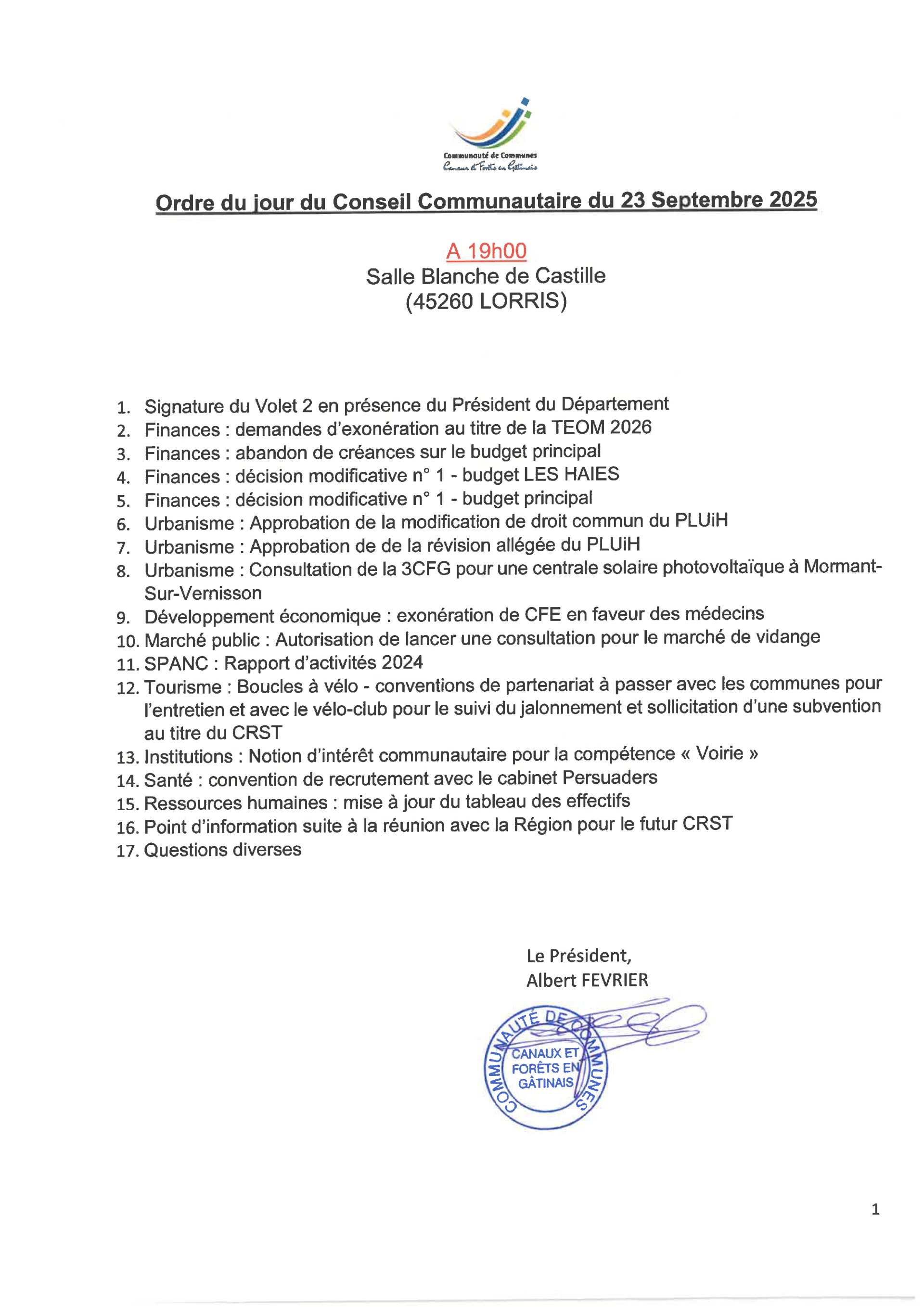 CONSEIL COMMUNAUTAIRE 23/09/2025